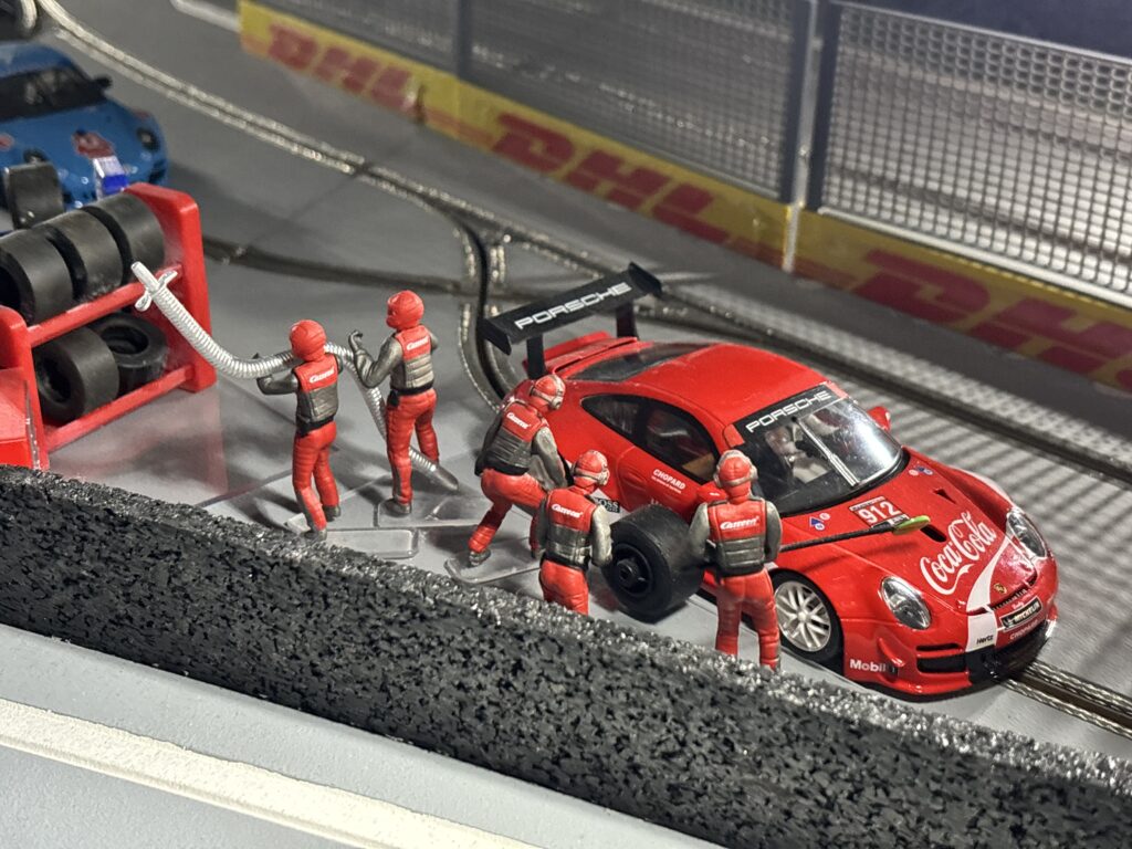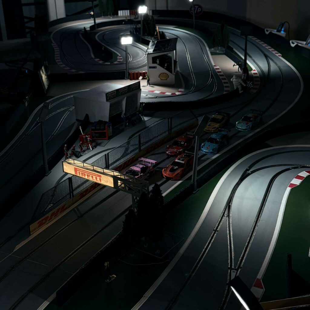 Nos voitures intègrent une gestion du carburant virtuelle : plus le pilote accélère, plus il consomme. Il doit donc passer par les stands pour ravitailler au bon moment. Ce système ajoute une véritable dimension stratégique et transforme l’animation en une course automobile réaliste et accessible à tous.